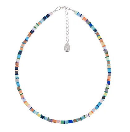 These great iridescent little glass cats eye cubes in all colours of the rainbow are dispersed with either rainbow slices. This effect makes these designs great for either evening or day wear. An absolute classic for Autumn that will go with anything in your wardrobe
