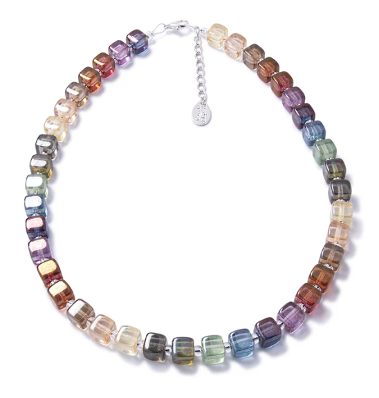 Made with stunning Czech bohemian glass cubes this range is a real showstopper. Featuring a variety of colours from the whole rainbow spectrum this bright range will match up with any outfit.