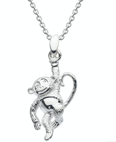 This cheeky little monkey pendant is crafted from sterling silver with oxidised detailing, hanging mischievously from a bail.