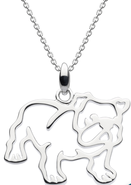 This bulldog pendant is crafted from sterling silver. With its cut-out design, it is simple but effective.