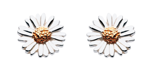 Delicately designed solid sterling silver daisy stud earrings with a 14ct gold plate centre.