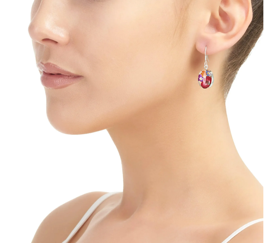 The red petals symbolize passion, strength, and beauty, while the pops of purple and orange add a bohemian touch, perfect for lovers of nature-inspired jewellery. Handmade with real flowers by Shrieking Violet®, these earrings bring the beauty of a blooming garden to your look, offering a blend of elegance and artisan craftsmanship.