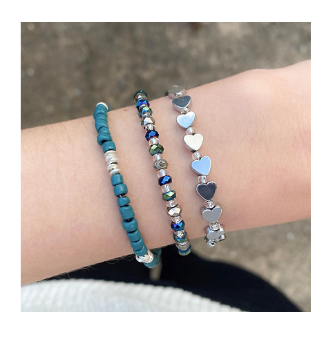 Sparkly crystals in gorgeous aqua colours separated by cute Czech silver lined beads. This bracelet is elasticated for ease of wear.