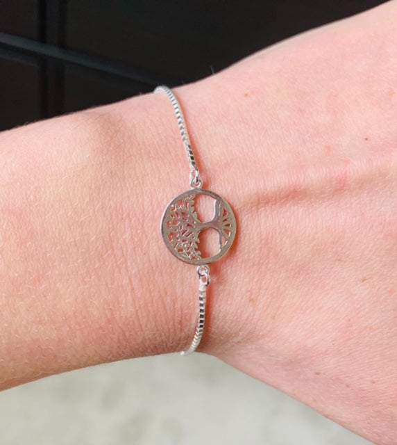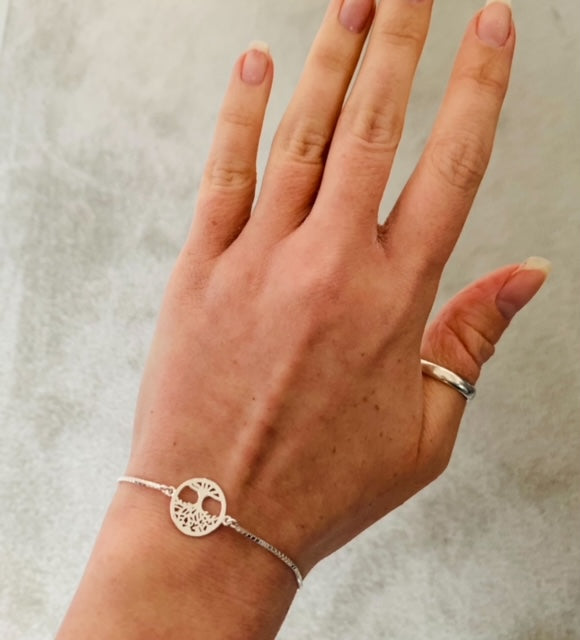 Perfect for layering alongside your favourite watch or bracelets, this pretty 925 Sterling silver slider Bracelet with a large centred silver open tree design is a versatile addition to any jewellery box.