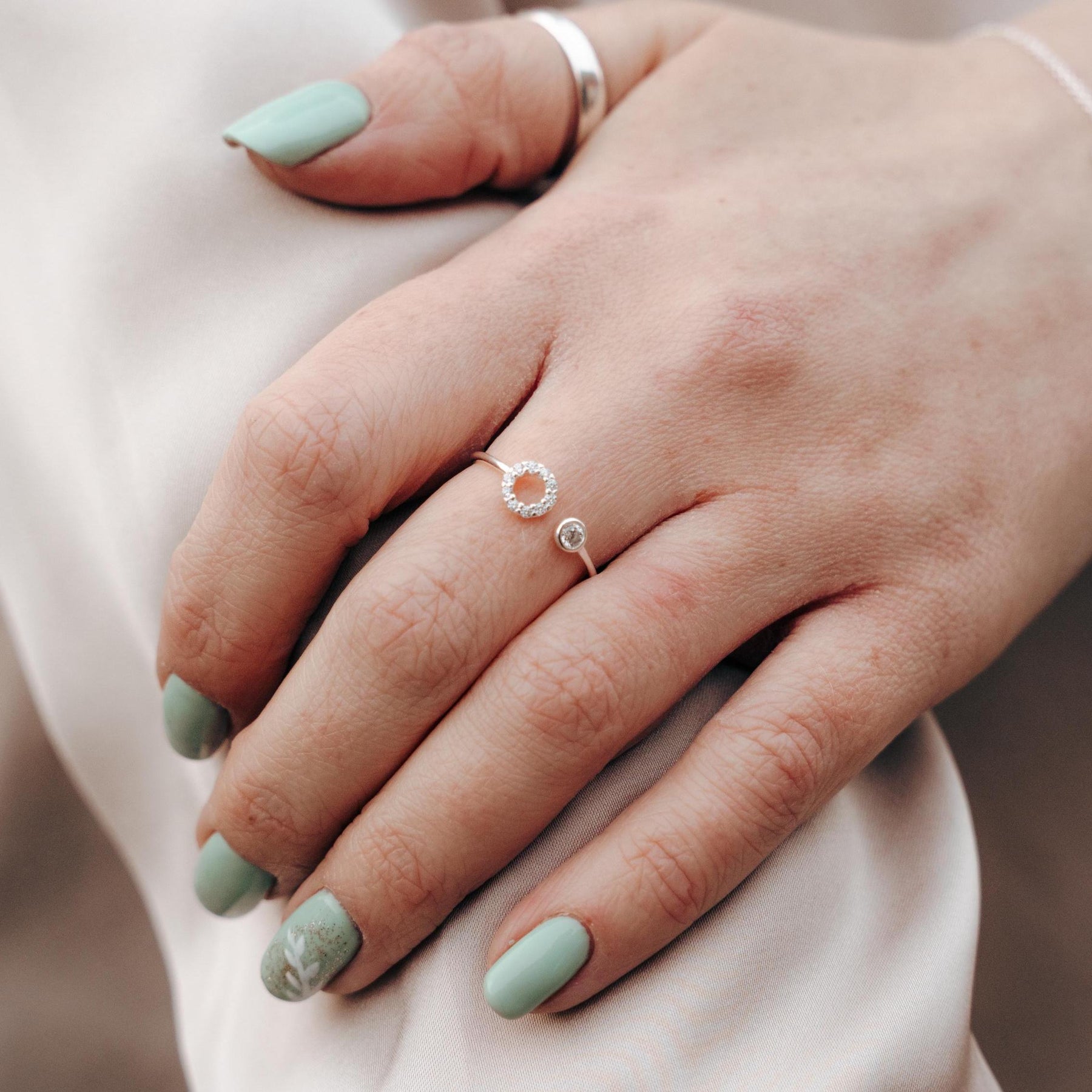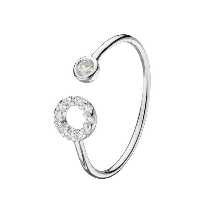 This sterling silver circle adjustable ring, set with cubic zirconia stones, symbolises the circle of life and eternity. This ring is an average size N and slightly adjustable, so it can be turned into a midi ring or layered with other rings.