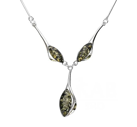 Elegant necklace made of 925 sterling silver with 3 pear shaped green amber stones.