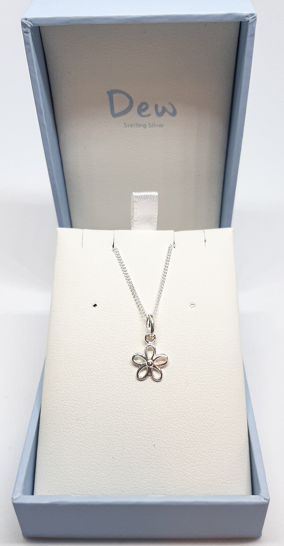 This simple yet sweet stylized flower pendant is crafted from stunning sterling silver.
